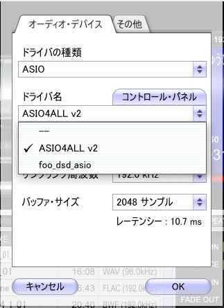 USB-DAC導入に伴いfoobarでのASIO再生できました。
