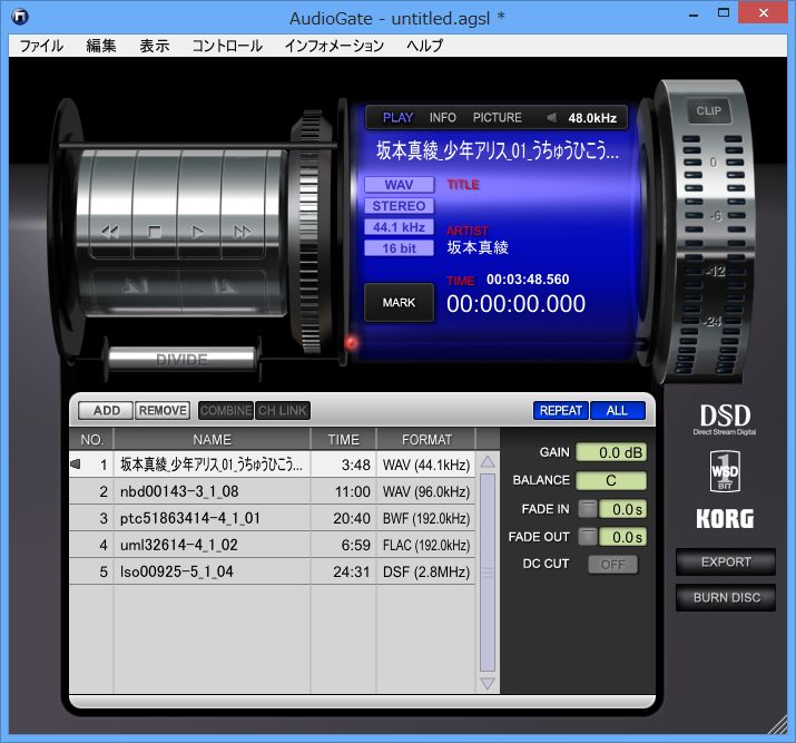 再生ソフトのAudiogate自体がDSD再生・DSDファイルへの変換を目的としたものということもあり、拍子抜けするほど簡単に再生できました。
