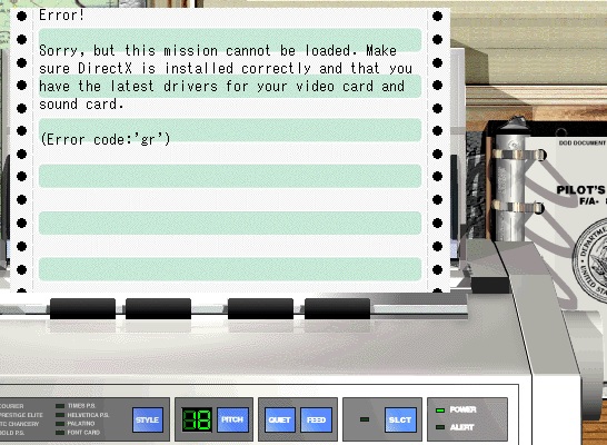 さっそくフライトをしてみるが、DirectXをインストールしろと言うエラーが出る。DirectXのバージョンが違いすぎて互換性がないのか。