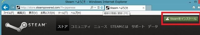 Steamのホームページ(http://store.steampowered.com/?l=japanese)から