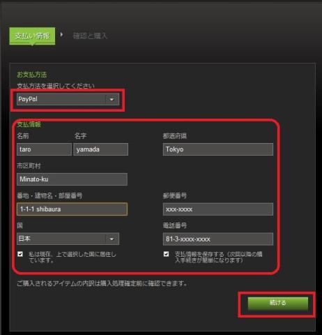 支払方法は「Paypal」がおすすめ、名前や住所には漢字は使えません。