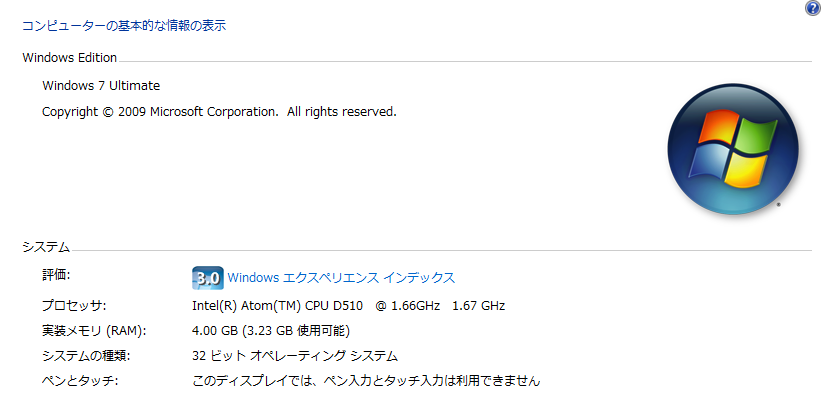 現在 D945GSEJT を Windows 7 (x86) の組み