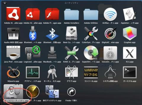 MacBook Pro のアプリケーションからユーティリティのディスクユーティリティを