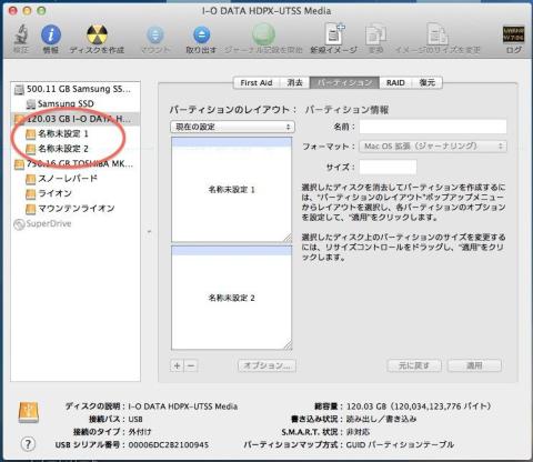 名称未設定 1 を Snow Leopard に、名称未設定 2 を Lion に