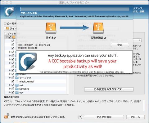 さて今度は、Carbon Copy Cloner を使って、名称未設定 2 へ