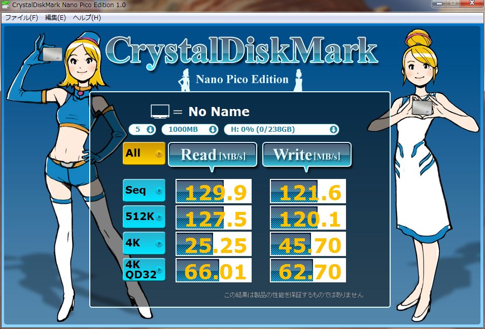 いつものCrystalDiskMark Nano Pico Edition登場です