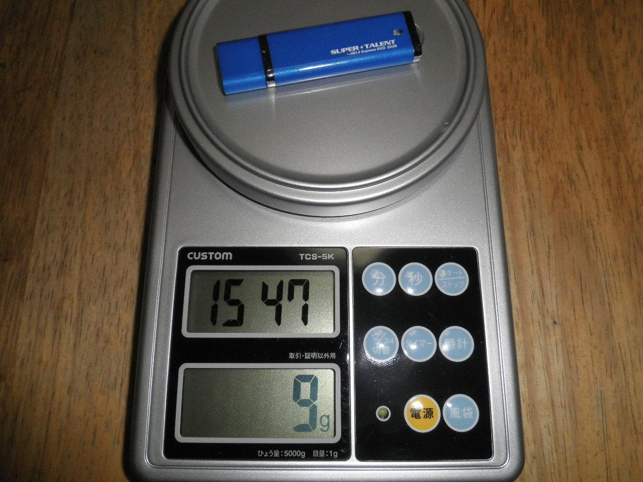 容量が違い過ぎて比較になりませんが、USB3.0接続メモリースティックは9gです