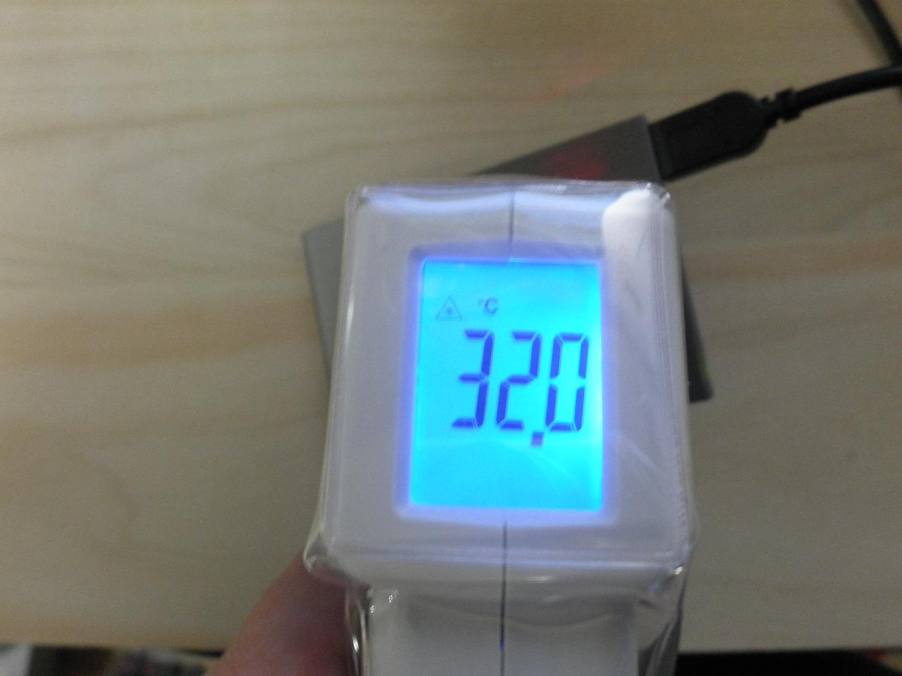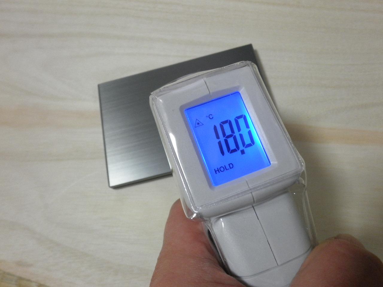 さーて実際に使ってみて、温度がどの位上がるか放射温度計を使って実際に調べてみましょう
