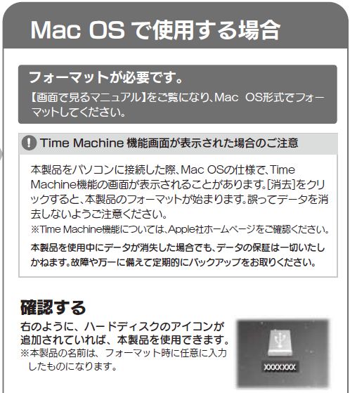 取説ではMacは再フォーマットが必要ですと書いてあります