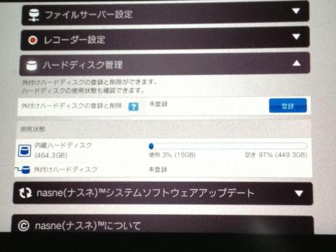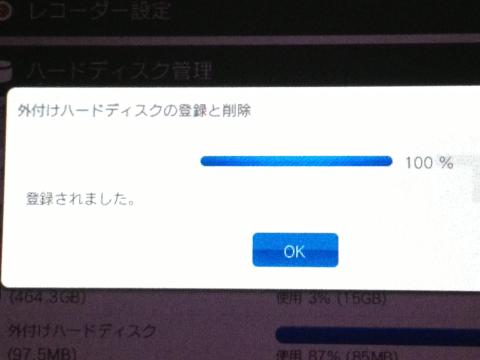 外付けハードディスクの登録と削除のところで、登録を押します。