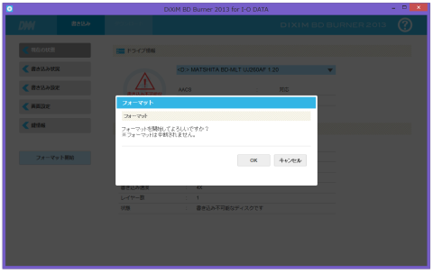 生ディスクはそのままでは使えないのでフォーマットをすることにします。