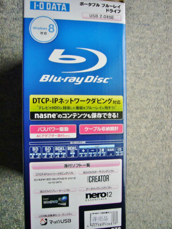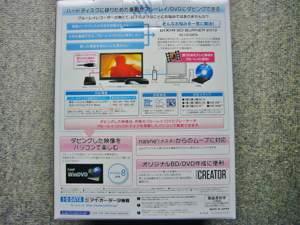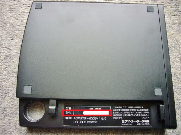 ここで大事なのは 消して有りますがS/Nの欄に書かれていシリアル番号ですね、 付属ソフト「DiXiM BD Burner 2013 for I-O DATA」をインストールする時に必要になります。