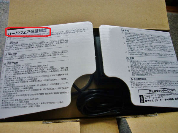 保証規定の下には何が?と思って明けてみると、USBケーブルとACアダプタが入ってました。