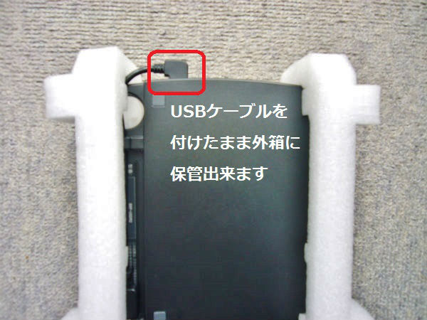 余り関係ないですが、USBケーブルを付けたまま外箱に入ります。