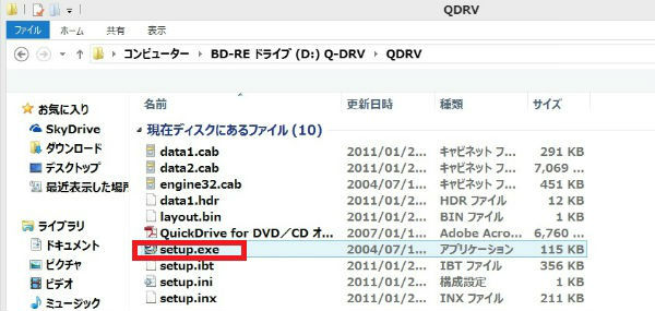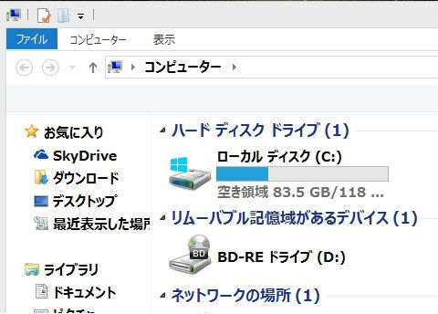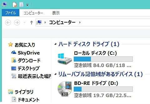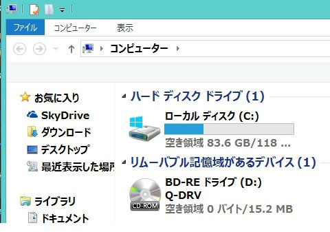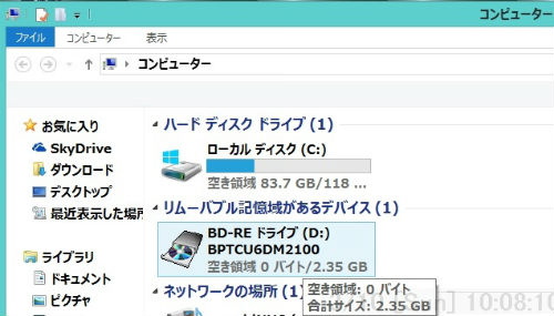 PCの使用OSがWindows8なのでディスプレイ上は何も起きませんので、エクスプローラーを立ち上げてDドライブをクリックします。