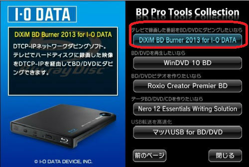 そして、ソフト「DiXiM BD Burner 2013 I-O DATA」を起動します。