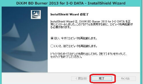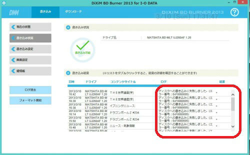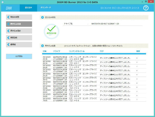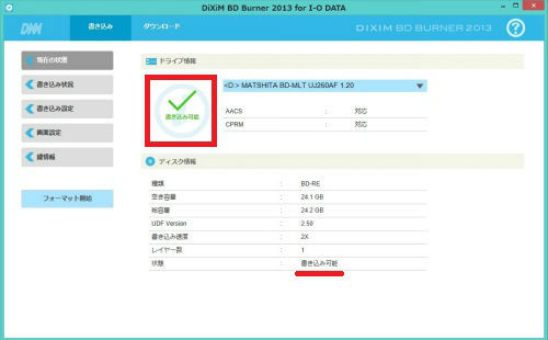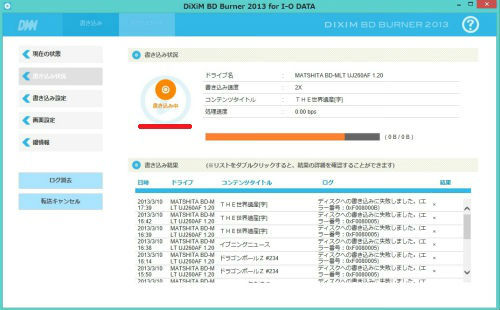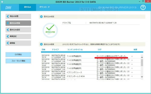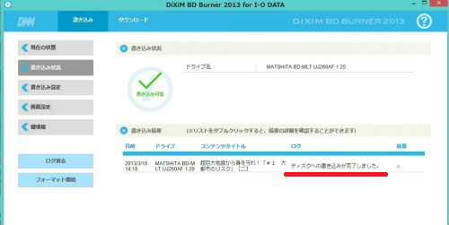 DiXiM BD Burner 2013 I-O DATAでも書き込みが完了しました。
