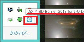 再起動後にタスクバーにDiXiM BD Burner 2013 I-O DATAのアイコンが表示され、PC起動時には立ち上がって来ます。