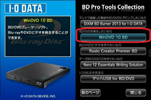 次は、「WinDVD 10 BD」をクリックしてインストールしましょう。