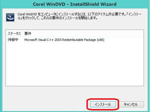 別にMicrosoft Visual C++ 2005 Redistributable Package(x86)が必要のようで、「インストール」をクリックします。