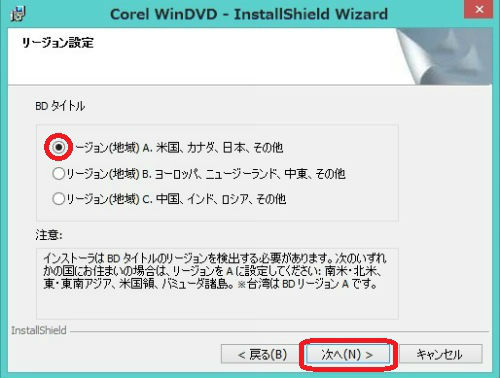 リージョン設定では勿論 Aの日本にチェックを入れて「次へ」をクリックします。