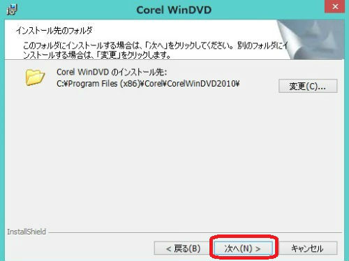 インストール先のフォルダーの変更しないのであれば、そのまま「次へ」をクリックします。