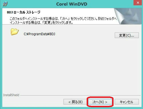 BDJ ローカル ストレージ? 良く分からないのでデフォルトのままで「次へ」をクリックします。
