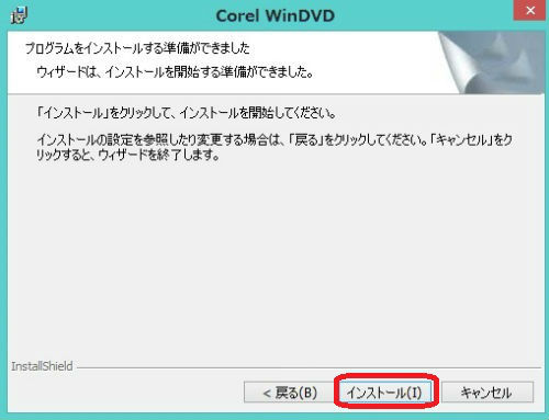インストールの準備が終わり、いよいよインストールです、「インストール」をクリックします。