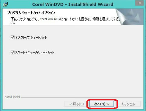 ショートカットはデフォルトのままで、「次へ」をクリックします。