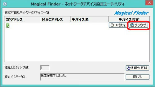Magical Finderののデバイス設定項目の「ブラウザ」をクリックします。
