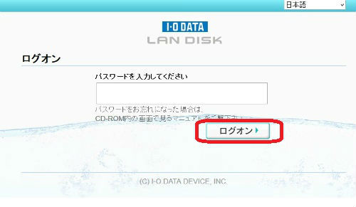 「パスワード」 を入力して、「ログオン」をクリックします。