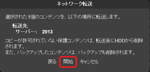 ネットワーク転送内容を確認して、「開始」をクリックします。