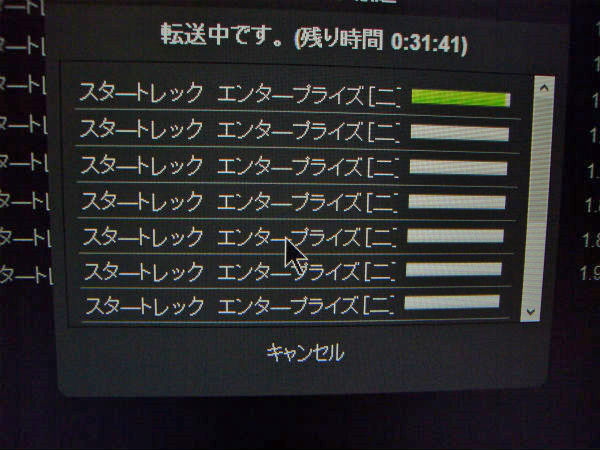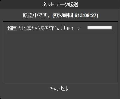 「転送中」 に成りました、残り時間が613時間9分27秒と出ていますが、始めだけで、次第に現実的な時間に成っていきます。