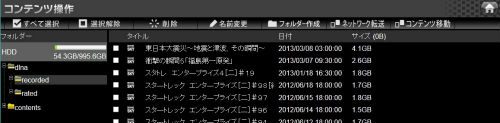 NAS内の録画したスカパーHD番組の一覧が出て来ます。