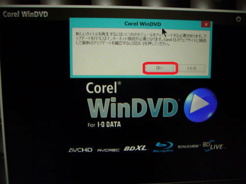 ん? アップデートが必要の様ですね、「はい」をクリックしてアップデートしましょう。