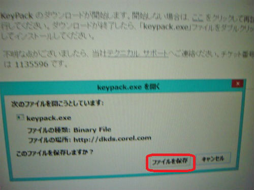 私の場合はFireFoxが立ち上がり「keypack.exe」をダウンロードし、ダブルクリックで実行しました。