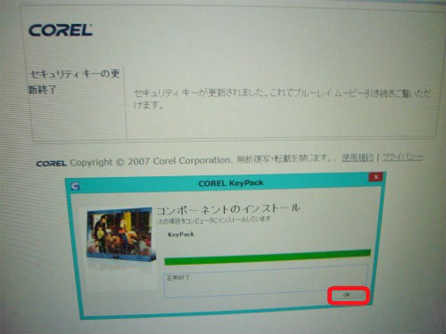 コンポーネントのインストールが完了し「OK」をクリックします。