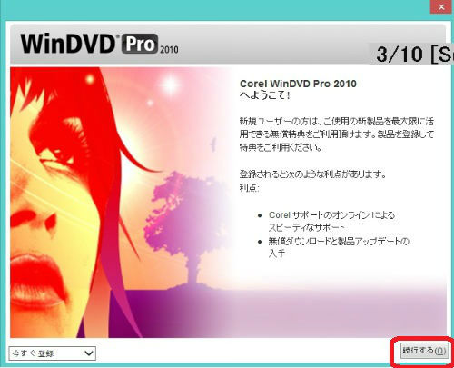結局は WinDVD 10 BDではなく WinDVD Pro 2010がインストールされた様です、「続行する」をクリックします。