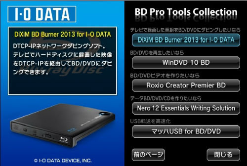 インストール出来るソフト一覧が出て来ました、それでは「DiXiM BD Burner 2013 for I-O DATA」をクリックします。