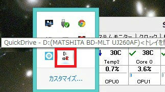 タスクバーに有る「QuickDrive LE for DVD/CD」のアイコンを右クリックして使用します。