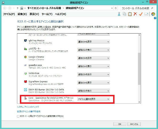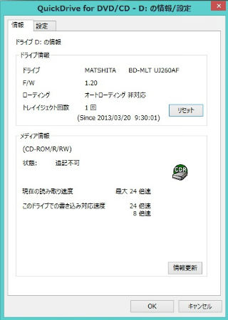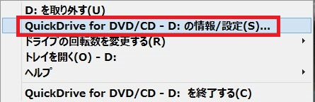 「QuickDrive for DVD/CD-D:の情報/設定」をクリックします。