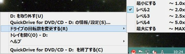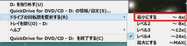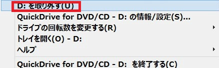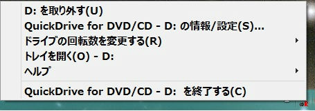 「QuickDrive LE for DVD/CD」のメニューがポップアップされます。