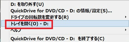 続けてトレイの操作で「トレイを開く」をクリックしてみましょう。