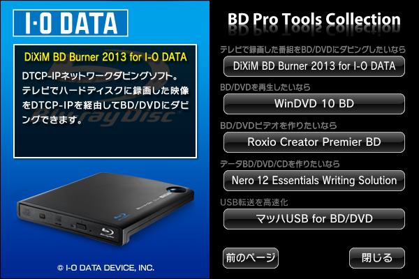 今回バンドルされているのは、メインとなる DiXiM BD Burner 2013 for I-O DATA とマッハUSB for BD/DVD以外に、