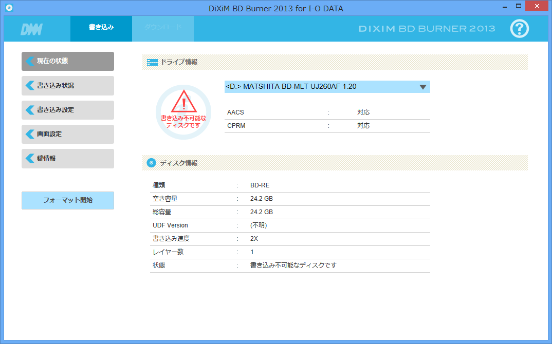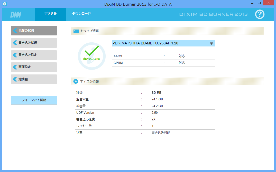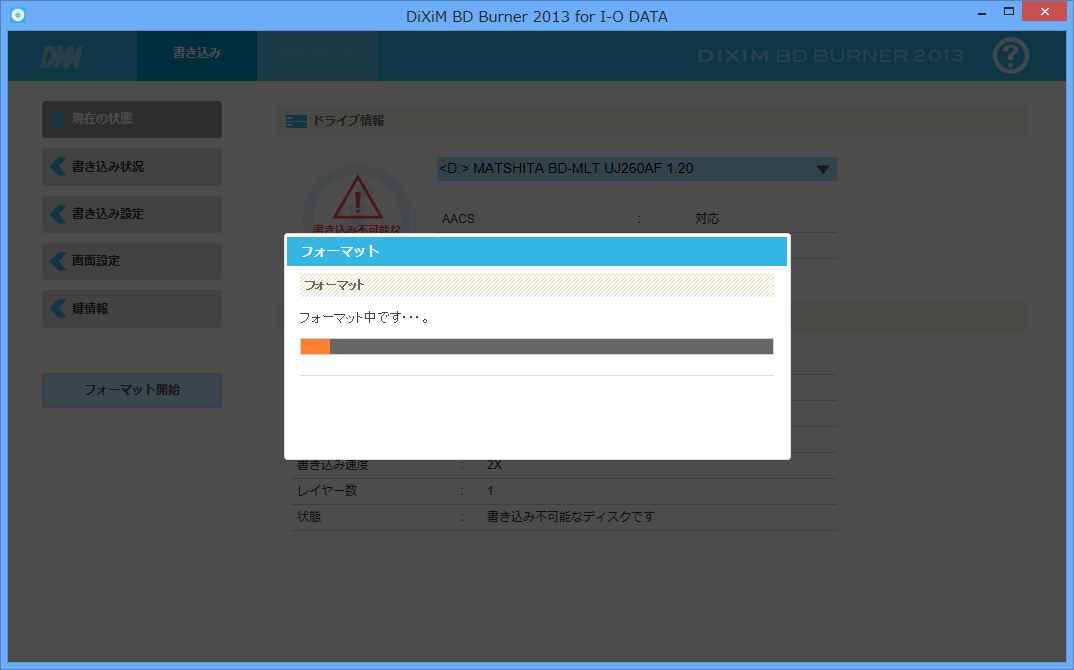 2) DiXiM BD Burnerでメディアをフォーマット