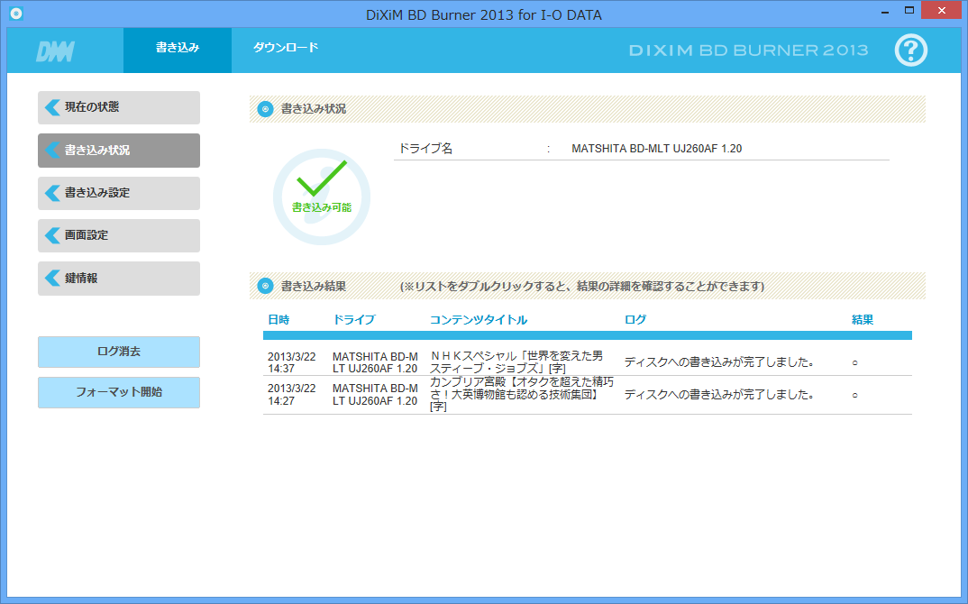 • DiXiM BD Burner 2013 アップデータ Ver.1.00 (2013/2/26)