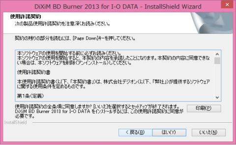 ここでは、「DiXiM BD Burner 2013 for I-O DATA」をインストールします。特に説明は不要ですので、流れだけのSSの掲載にします。