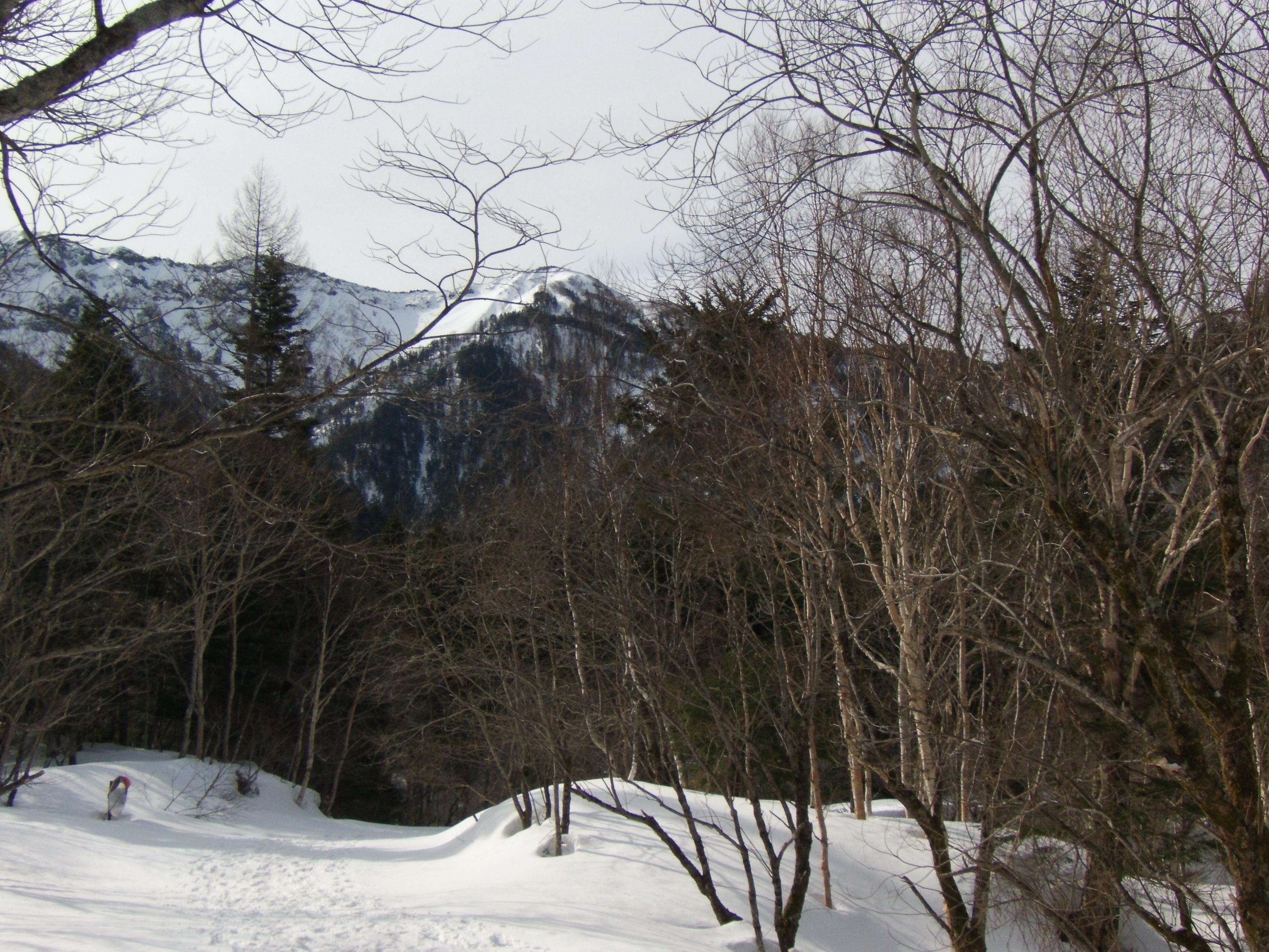 雪質は、アイスバーンに新雪が数センチ積もった状態で登りにくく、僕のスキーのシールとクトー(スキー用アイゼン)では登れずアイゼンも持ってこなかった為、2122m付近で敗退しました。