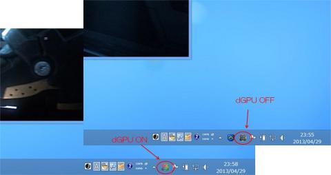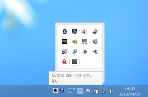 ゲームなどを起動しているときにdGPUがONになっているかを通知領域のアイコンで確認できます。