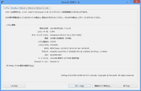 ◎その他の情報(DirectX 診断ツール、GeForce Driver、CrystalDiskInfo、CrystalDiskMark)